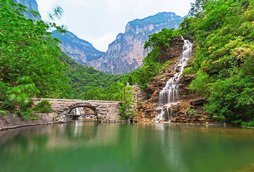 洛阳Luoyang 展开全长1.5公里,穿行在红色岩石和碧绿溪水之间,欣赏瑰丽的丹霞地貌峡谷景观
