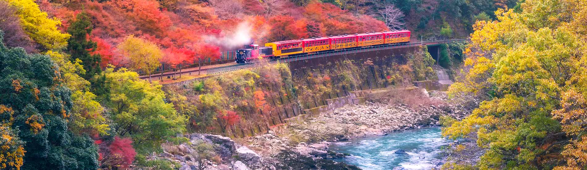 京都Kyoto 展开搭乘浪漫的嵯峨野观光小火车,感受峡谷景色中;如因当日情况无法安排时,将参观以回游式庭园闻名的世界文化遗产- 天龙寺Tenryu-ji Temple