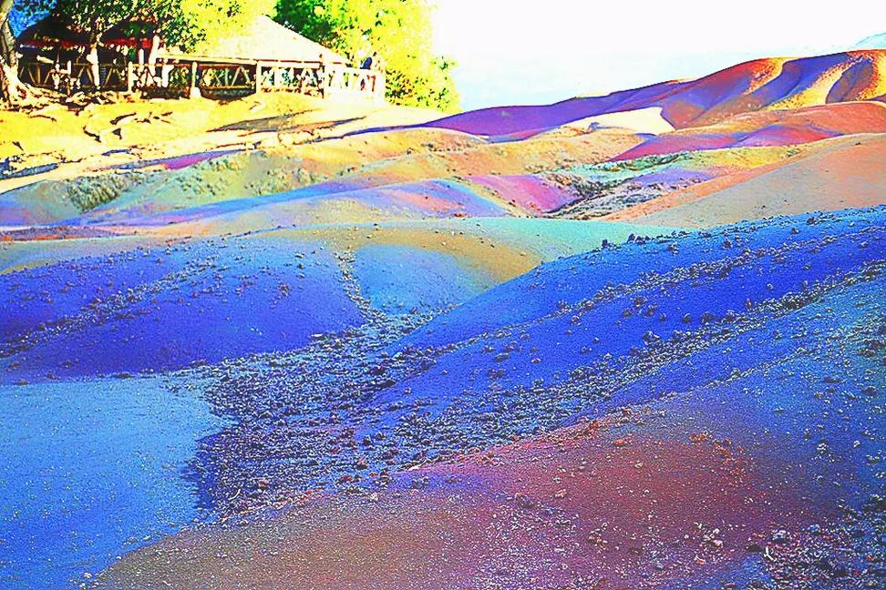 这是一处神奇的山坡,在这片山坡上有着同时拥有七种不同颜色的泥土,是世界上唯一一处有该奇特地质的地方。这些泥土是由火山喷发出来,经氧化后而变色,因腐蚀而形成的一个个波浪形的小山丘,经过太阳的照晒折射出而呈现出不同的颜色。七色土的四周植被郁郁葱葱,惟独这一片七彩的土地上寸草不生。那条条缕缕的带状彩色泥土,宛若一道道彩色的小溪流入森林之中,在阳光下仔细看,只见粉红、浅紫、深紫、浅蓝,棕褐等颜色铺成的层层起伏、高高低低的小山丘,层次分明,颜色明艳艳的交织在一起。更加神奇的是,即使人们把山坡上不同颜色的土翻开后再混合在一起,只要经过一场大雨,它们又会恢复原状,各种颜色的泥土分离开来。