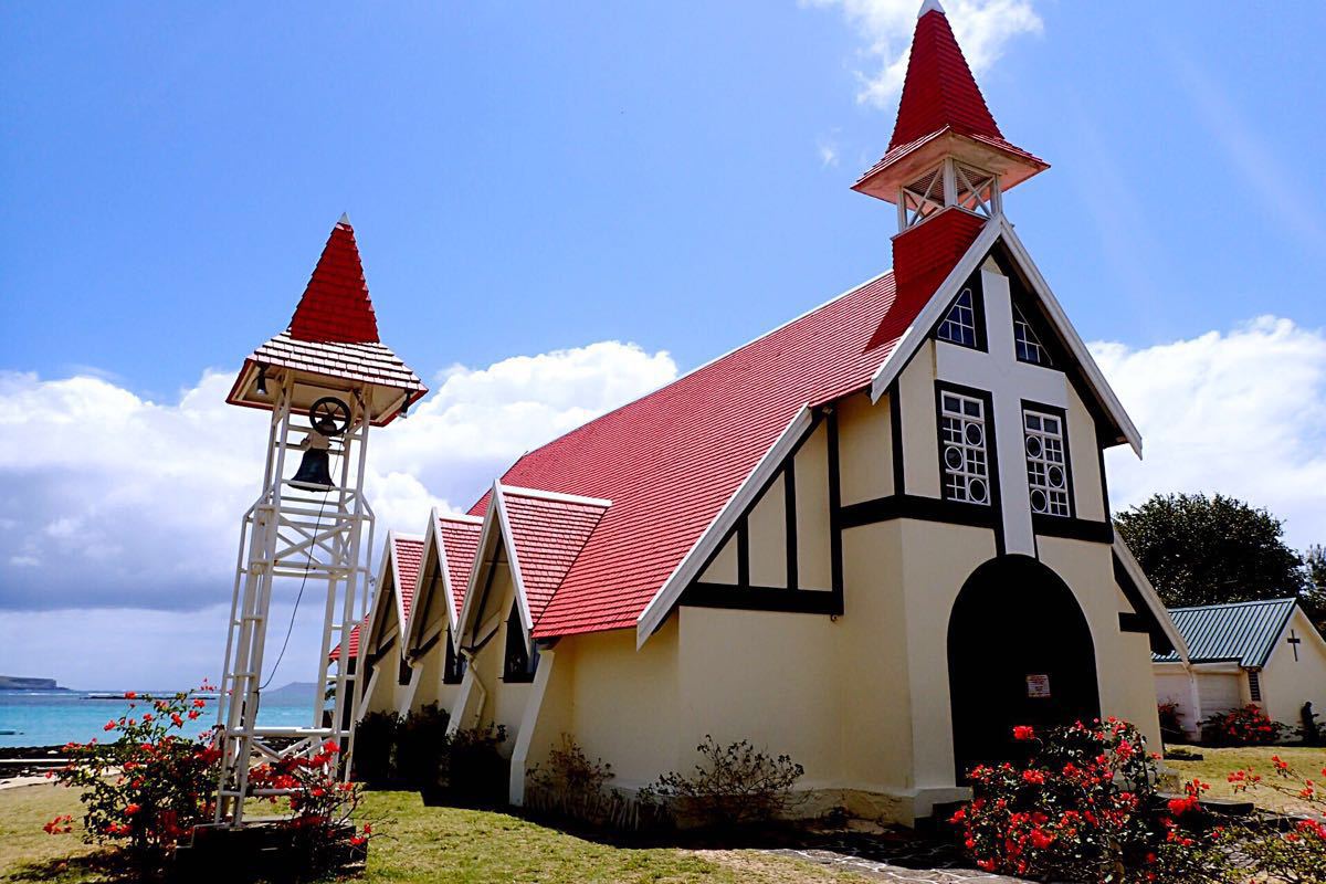 由法国人建造的红色屋顶已有百年历史,它静静地矗立在海边,衬托着周围绿色的草坪以及后方湛蓝的大海,鲜艳的颜色使得教堂成为了毛里求斯较为受欢迎的明信片取景地之一。站在临海的教堂边,蓝天白云、碧海银沙、绿草红瓦,以及美丽的海岸线吸引着许多人来此参观摄影。其内部也有着精美复杂的木质结构,做工格外精致。长椅也被漆成了红色,做到了里外一致。此外仿造巨大蚌壳打造的圣水盆也非常值得参观欣赏。