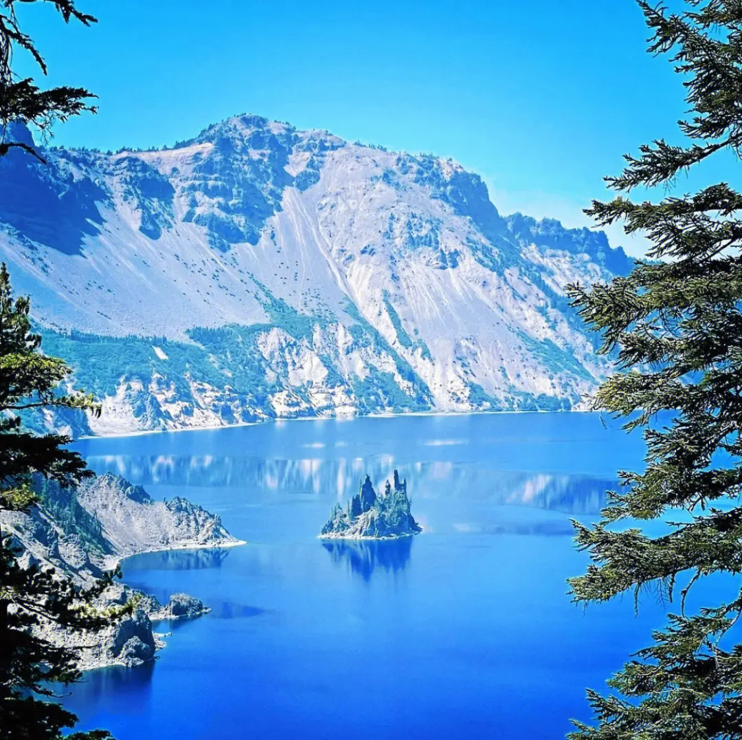 全美第五个古老的国家公园,也是世界最大的火山口湖琦丽湖,7700年前,马札马火山大爆发,在原本峰顶的地方留下一个盆地。几千年的雨雪将盆地填充,形成了湖。每年这里的降雪量超过十米,琦丽湖纯净的深蓝色是其它湖泊所无法相比的。它是美国最深的湖,深处近600米。世界上没有一个地方,同时结合了这么深,这么纯净,这么蓝的湖泊,纯粹得如仙子般不染尘埃。