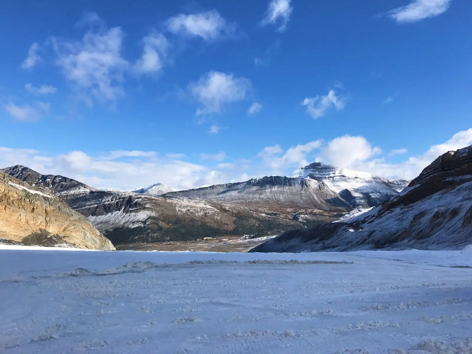 第二天 :灰熊镇/鲑鱼湾→冰河国家公园(途经)→优鹤国家公园(途经)→班芙国家公园 → 鸦爪冰川(途经)→哥伦比亚冰川(2.5小时,含冰原雪车、天空步道游览时间)→ 弓湖(途经)→班芙小镇(60分钟)