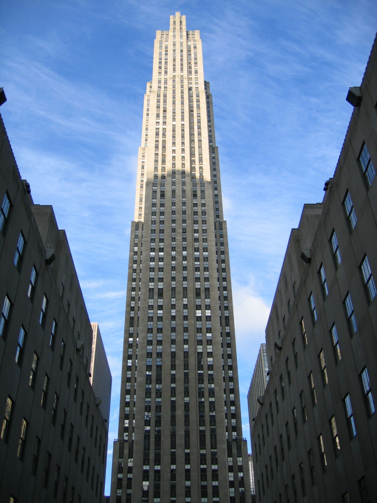 洛克菲勒中心是由19栋商业大楼组成的建筑群,着名的峭石之巅观景台位于70层,是仅次于帝国大厦的俯瞰曼哈顿全景的好去处。中心内部设有商场和餐厅,NBC广播电台也落户其中。供人们小憩的街心花园也会定期举办展览。洛克菲勒中心还是《鹰眼》大结局中的决战之地。